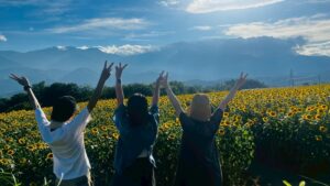 びっしりと植えられているひまわりたちは圧巻の景色でした。