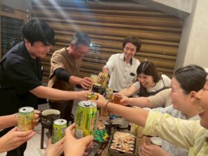 外はまだまだ暑くて、汗をかきながらも冷たいお酒や美味しいお肉たちで話が弾み