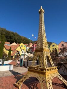 街並みの家も色とりどりで、ミニフランスにちなんでミニエッフェル塔もありました笑