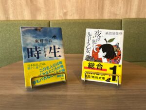 東野圭吾さんの『時生』(左)と、森見登美彦さんの『夜は短し歩けよ乙女』(右)です。